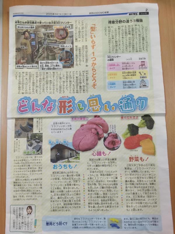 12/11 (木)号の読売KODOMO新聞にて、弊社の装置が掲載されました。